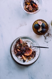 Couper les figues en morceaux, mélanger le tout dans un bol, déguster.